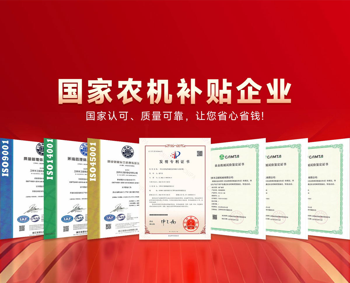 中國 河南衛輝市衛新機械有限公司坐落在中原歷史名城衛輝市,是一家集養殖機械產品研發、制造、銷售于一體的多元化高新科技公司。公司注冊資金500萬元、現有員工100余人,我們以國際企業為標準,高起點;高標準的從事養殖機械產品的研究與推廣。產品曾多次獲得上級產品質量獎,目前產品暢銷三十多個省市自治區,享有良好的市場榮譽,贏得了用戶的好評。  公司始終堅持以嚴格的管理制度,保證高質量的產品服務用戶。有品質才有市場,有改善才有進步。我們相信,提供更好的產品,才是回報客戶更好的辦法。  2019年我公司被定為河南省農機購置補貼企業。同年,我公司與北京機械研究院共同起草了粉碎機的三項國家標準和行業標準。2010年、2012年、2013年我公司被選為農機補貼企業。  我公司是重合同、守信用單位,我們將以更好的產品質量、優惠的價格、良好的售后,竭誠為用戶服務。